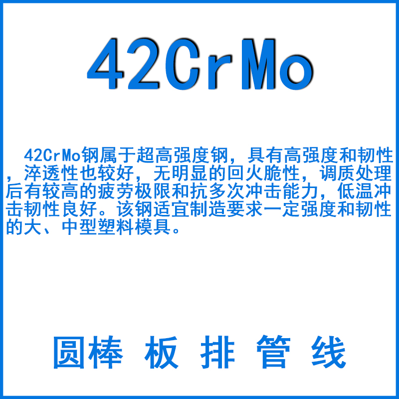 42CrMo鋼屬于超高強(qiáng)度鋼,具有高強(qiáng)度和韌性,淬透性也較好,無明顯的回火脆性,調(diào)質(zhì)處理后有較高的疲勞極限和抗多次沖擊能力,低溫沖擊韌性良好。該鋼適宜制造要求一定強(qiáng)度和韌性的大、中型塑料模具。
