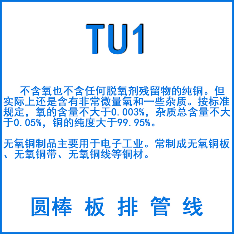無氧銅是不含氧也不含任何脫氧劑殘留物的純銅。但實際上還是含有非常微量氧和一些雜質。按標準規定,氧的含量不大于0.03%,雜質總含量不大于0.05%,銅的純度大于99.95%。